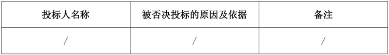5、被否决投标的进入评审的投标人名称、原因及依据: