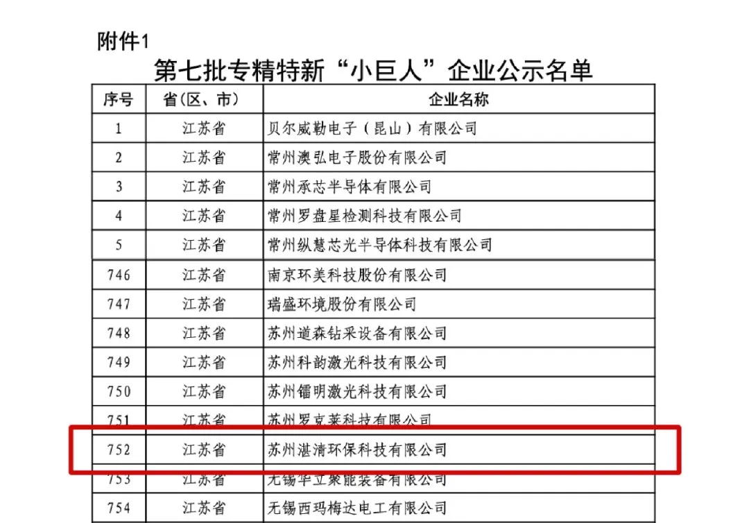 近日,工业和信息化部公布第七批国家专精特新“小巨人”企业名单,湛清环保凭借其在工业废水处理与资源循环领域的技术实力与市场表现,成功入选。