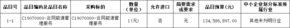 该项目预算金额1.34亿,采购人为海南省直属机关服务中心。项目自合同签订之日起能源费用托管服务期最长为10年,光伏发电系统为能源托管服务期满后最长延续15年。