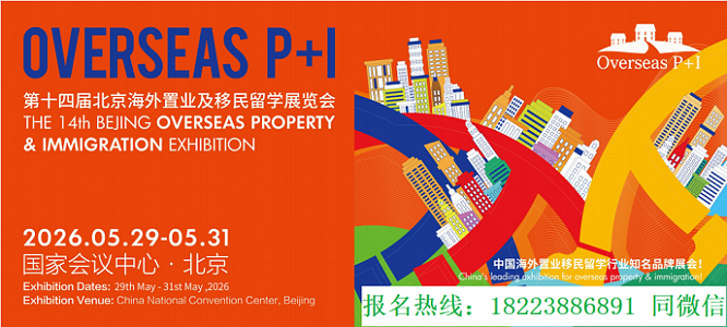作为中国海外置业、移民及留学领域重点品牌展会,Overseas P+I第十四届北京海外置业及移民留学展将于 2026 年 5 月 29 至 31 日在国家会议中心再