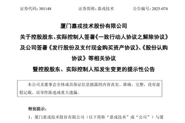 嘉戎技术表示,本次交易完成后,厦门溥玉预计将成为上市公司控股股东,胡殿君预计将成为上市公司实际控制人。本次交易不会对公司的正常生产经营造成不利影响。不存在损害公司和中小股东利益的情形,亦不存在违反相关承诺的情形。