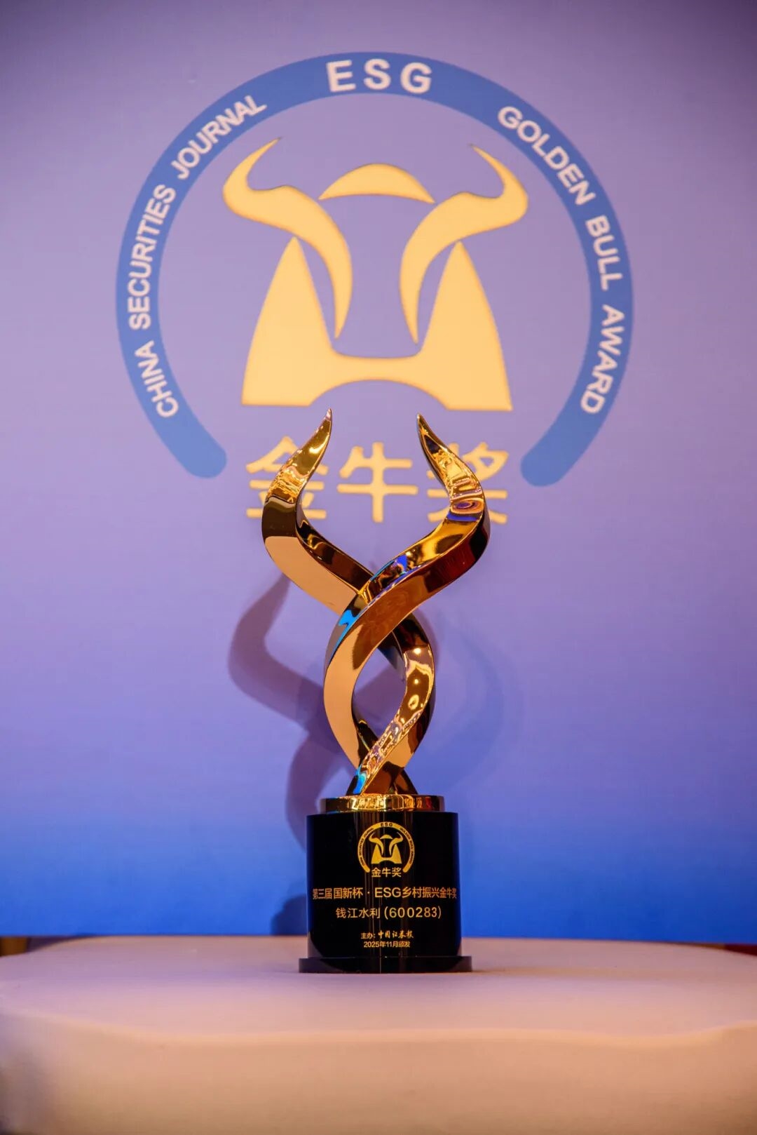 11月26日,2025年金牛企业可持续发展论坛暨第三届“国新杯·ESG金牛奖”颁奖典礼在苏州举办。中国水务所属钱江水利凭借在ESG领域的持续优异表现,荣获“ESG乡村振兴金牛奖”,连续第二年获此系列奖项。