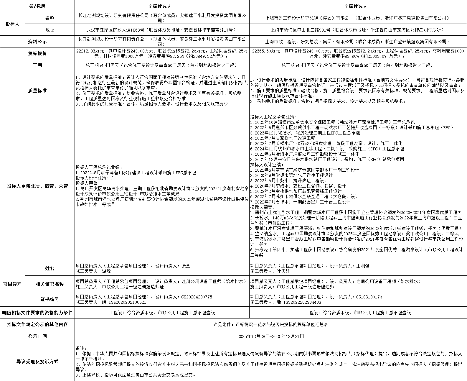 安徽省祁门县第二水厂建设工程定标候选人公示。