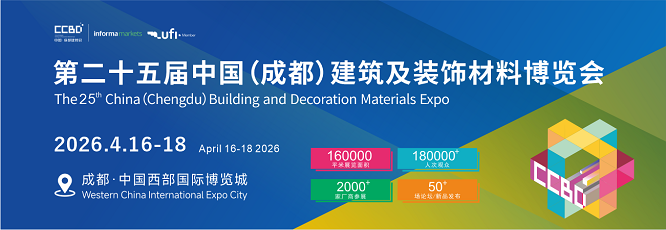 第二十五届中国(成都)建筑及装饰材料博览会(简称:2026CCBD中国成都建博会),将于2026年4月16—18日在中国西部国际博览城召开。本次展会规划160000㎡展区,预计2000+家参展企业,50000+款新品,180000+人次专业观众,50+场论坛活动/新品发布会。