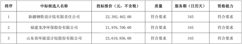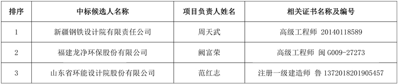 [伊犁钢铁1#、2#矿槽和1#、2#出铁场除尘系统升级改造项目(EPC)]中标候选人公示