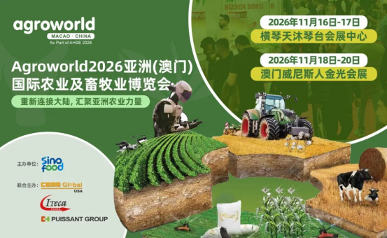 Agroworld2026亚洲(澳门)国际农业及畜牧业博览会作为亚洲规模 的农业及畜牧业博览会之一,本届展会是AHSE 2026重要组成部分,于2026年11月16-20日,以横琴+澳门双城联展模式启幕。