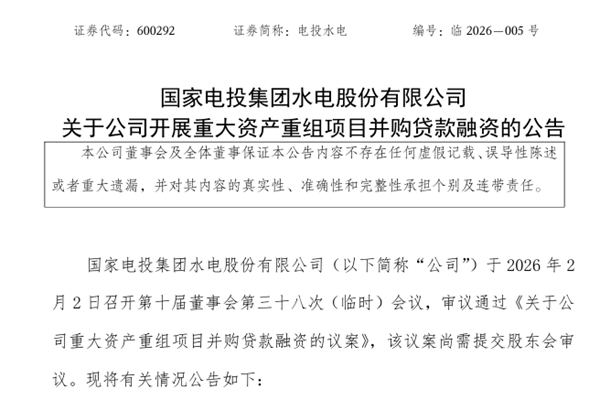 国家电投集团水电股份有限公司(简称:电投水电)近日公告称,鉴于本次交易配套募集资金仍在开展相关募集工作,募集资金到位时间存在不确定性,公司计划通过并购贷款方式筹集资金,以满足本次交易现金支付需求,计划并购贷款金额不超过36.04亿元