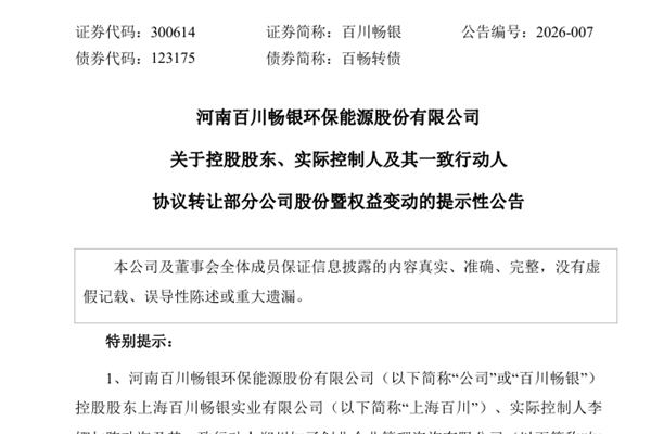 据悉,本次协议转让的开展基于沼气发电行业受相关政策调整影响,行业发展迎来阶段性调整,市场发展环境发生相应变化;上述股东基于自身资金安排需要,江苏能源基于对百川畅银长期价值的认可及产业协同的战略考量,经友好协商达成的市场化交易。