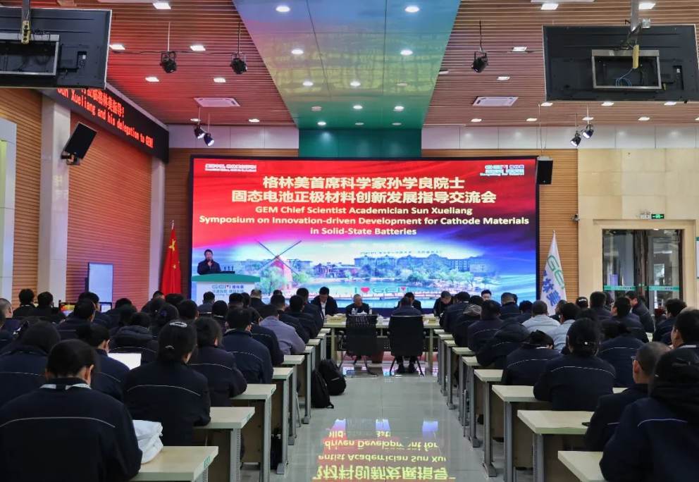 活动伊始,孙学良院士以高屋建瓴的视野、深入浅出的阐释,全面解读全固态电池产业发展机遇、挑战与产业化路径,为格林美核心管理人员、创新人员共200余名骨干带来了一场精彩的学术分享交流会。交流会中,孙学良院士围绕全固态电池全球发展格局、国家战略、中国产业化布局及国际合作展开系统阐述,重点剖析卤化物固态电解质五大核心挑战与技术进展,对新型电解质、正极材料开发方向做出科学总结与前瞻展望,同时也为格林美创新团队提供了极具前瞻性和指导性的技术思路。孙学良院士特别指出,在“十五五”规划开局之际,新型储能与固态电池作为六大新型支柱产业之一,将成为引领新质生产力的关键领域。他热切期望能与格林美发挥各自优势,紧密合作,共同推进固态电池用正极材料的技术革新与产业化进程。