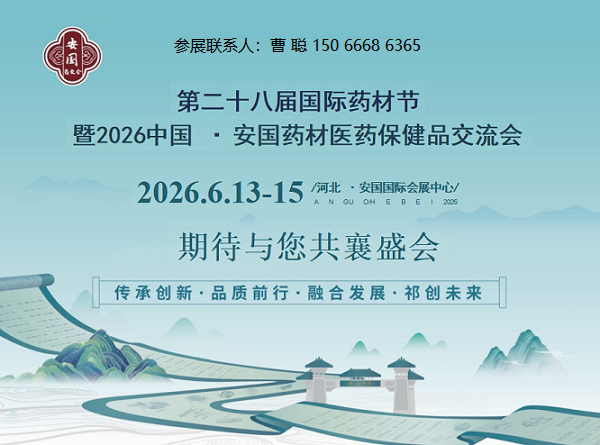 为汇聚全球中医药产业力量,共襄行业发展盛举,第二十八届国际药材节2026中国安国药材医药保健品交流会(以下简称“药交会”)于2026年6月13-15日在河北安国市举办。本届展会将依托安国深厚的产业底 蕴与战略发展势能,搭建集产品展示、供需对接、技术交流、文化传承于一体的产业链高端平台,诚邀海内外 中药材种植、加工、研发、流通、大健康服务等领域企业共赴药都,共享千年药都的产业红利,共促中医药传 承创新与全球合作,携手助力中医药事业高质量发展!