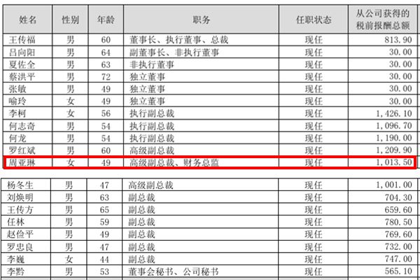 据相关机构统计,周亚琳千万年薪的诞生,打破A股市场CFO薪酬天花板。此前,A股CFO最高薪酬为美的集团钟铮的946万元。
