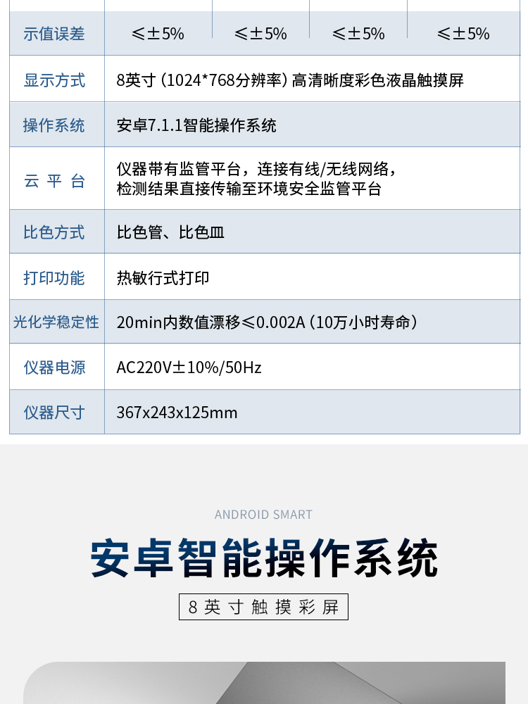 光化学稳定性: | 20min内数值漂移≤0.002A(10万小时寿命) |