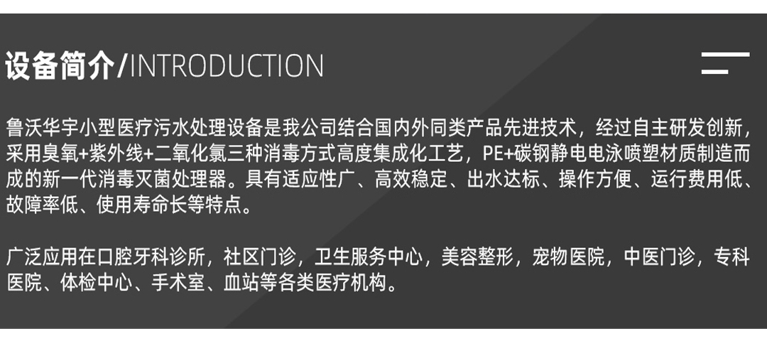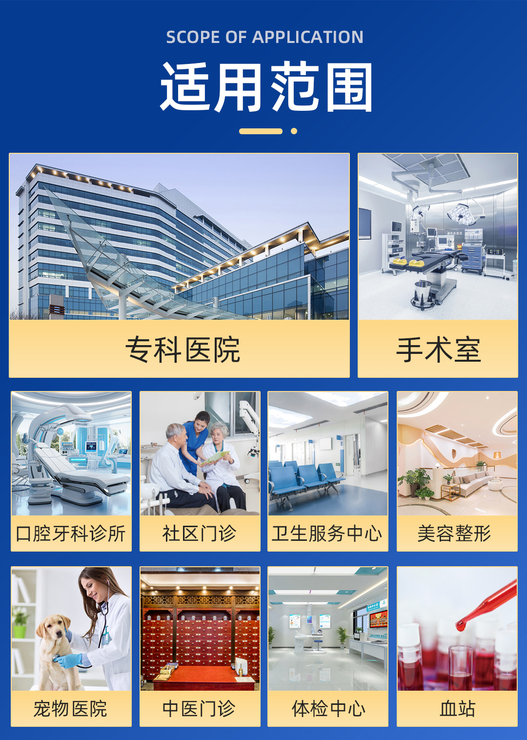 用途范围: | 医院、卫生院、门诊、诊所、口腔牙科、医美整形、动物诊疗等医疗机构的污水、废水消毒处理 |