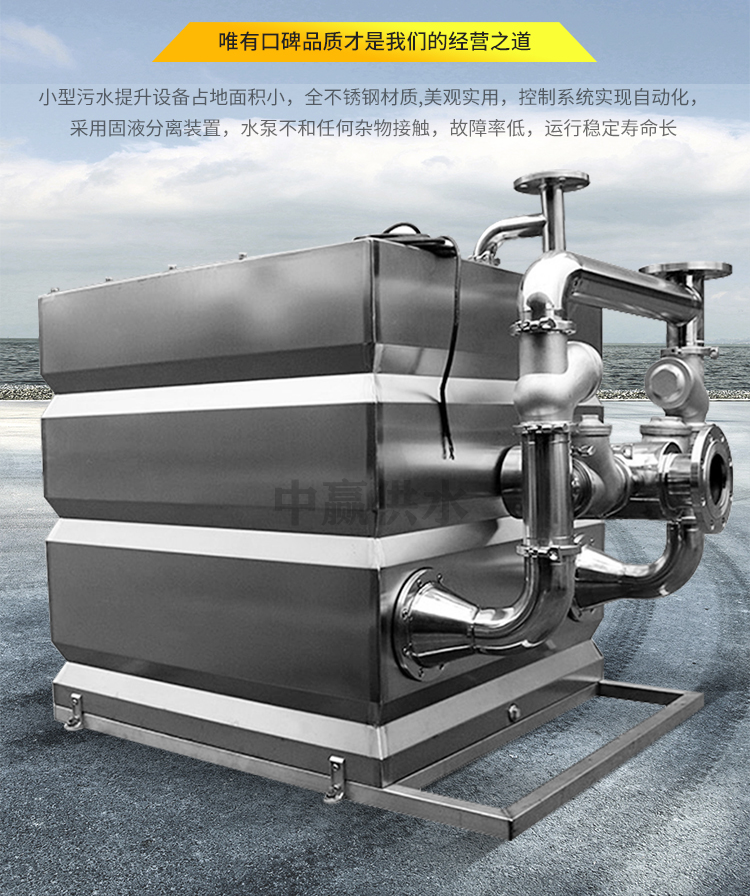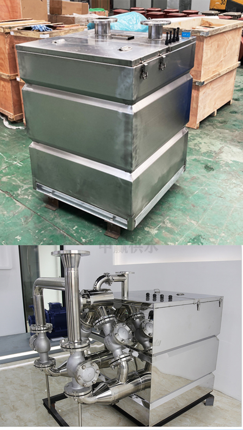 地下室智能化污水提升 全自动无需操心高层供水系统等型号:ZYWS,材质:不锈钢,排出口径:DN100mm,汽蚀余量无,吸入口径:DN100mm,扬程:20m,原理:反冲洗,泵轴位置:立式,叶轮数目:3,叶轮结构:中开式,叶轮吸入方式:电动,许过 粒径:100mm,外形尺寸:150*100*120c