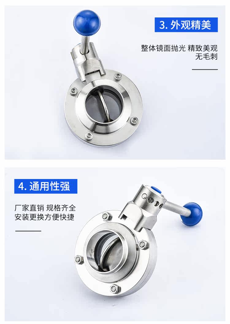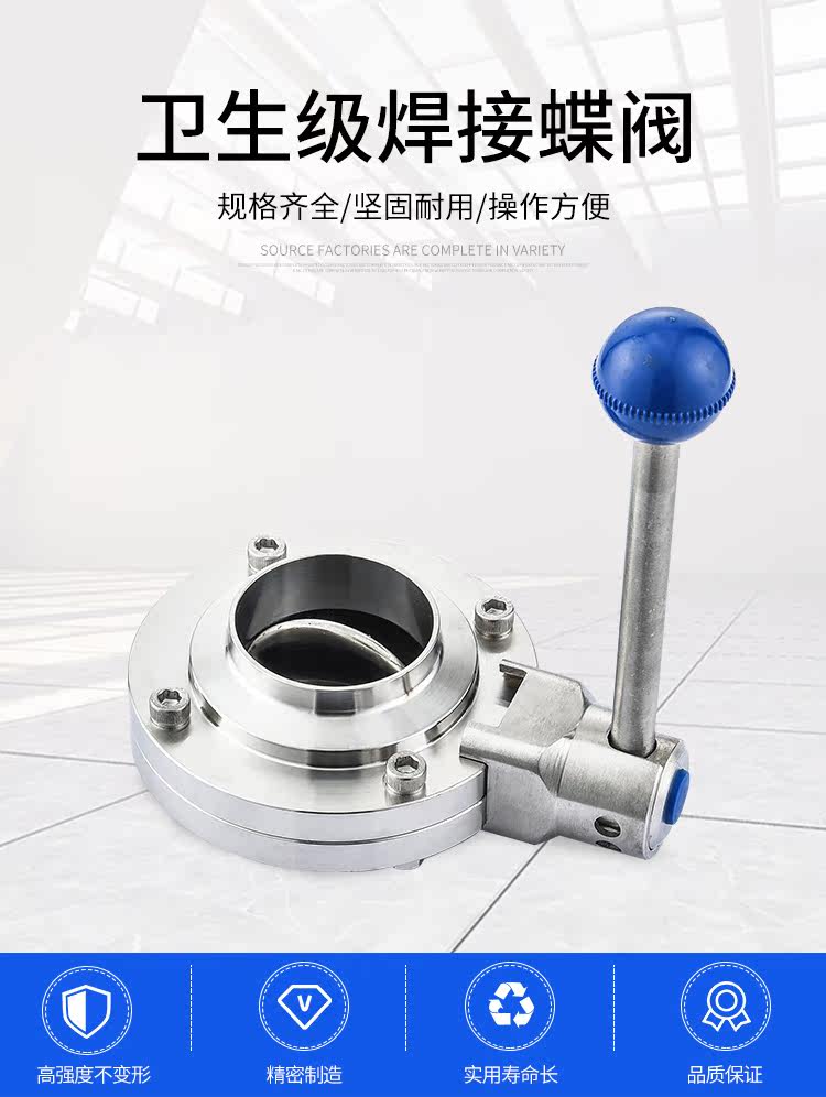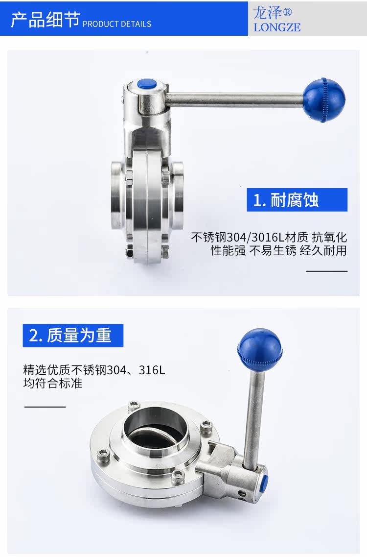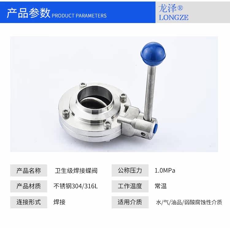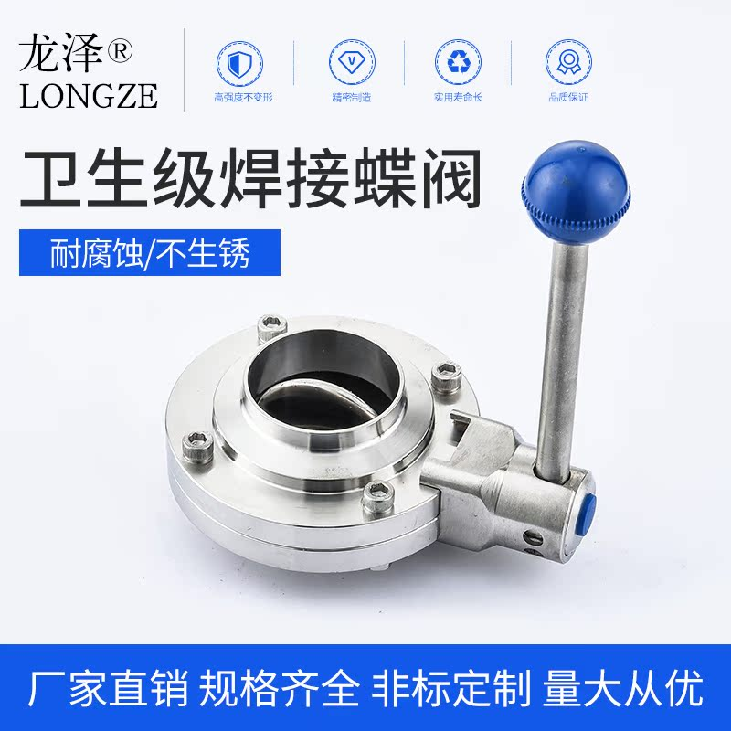 龙泽304/316L卫生级焊接蝶阀不锈钢阀门食品级厂家直销手动碟阀