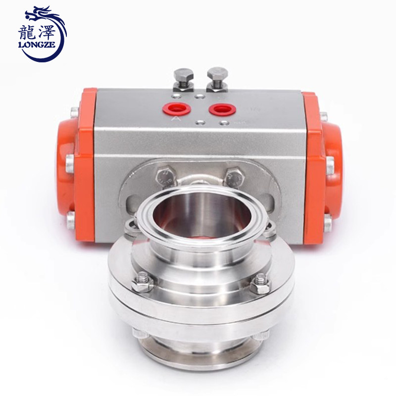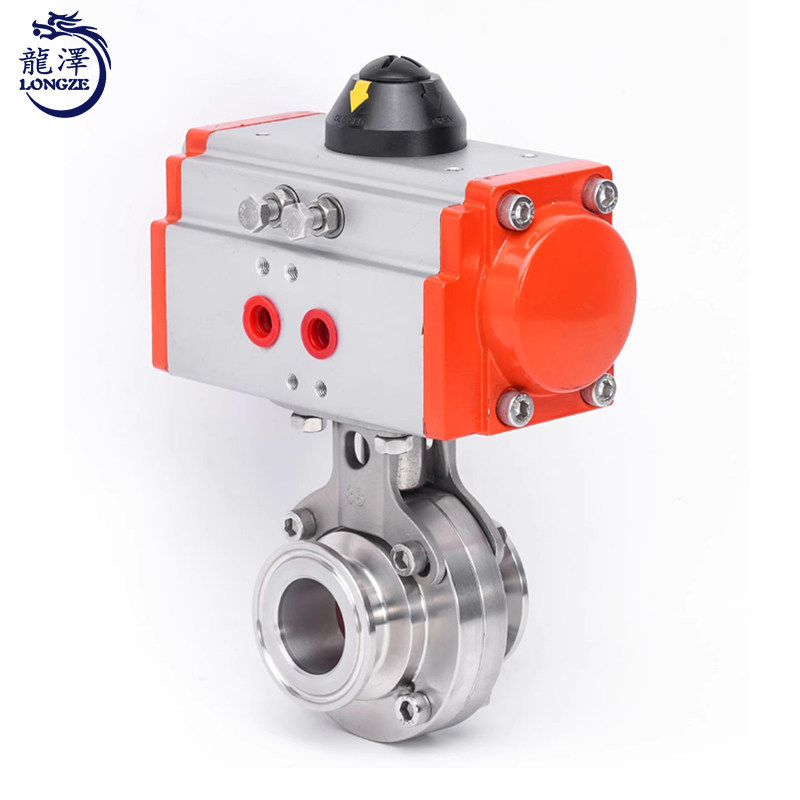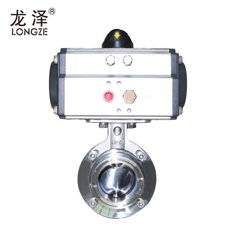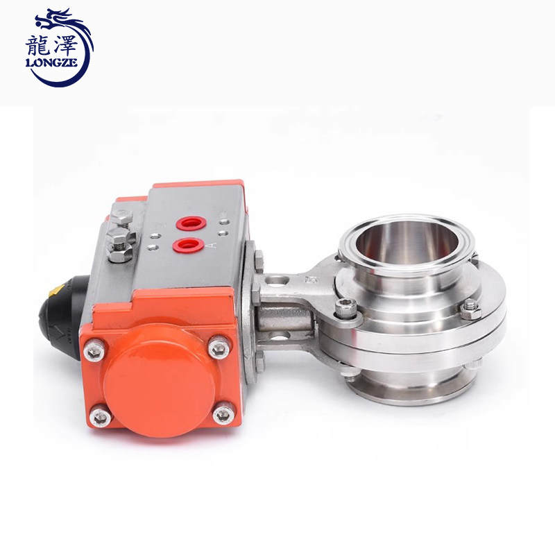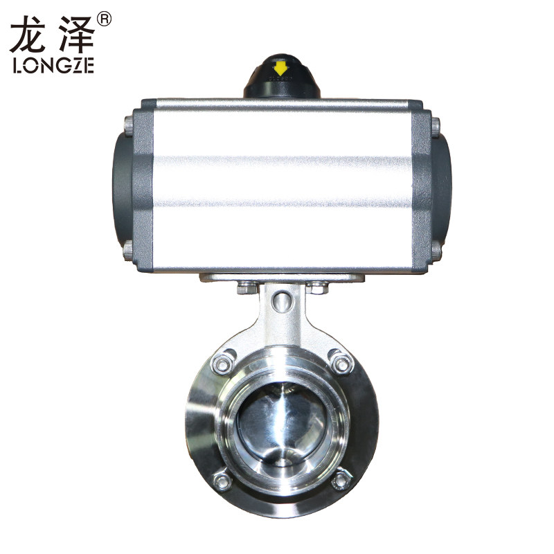 龙泽304不锈钢气动快装蝶阀单/双作用卫生级铝制卡箍卡盘蝶阀快开