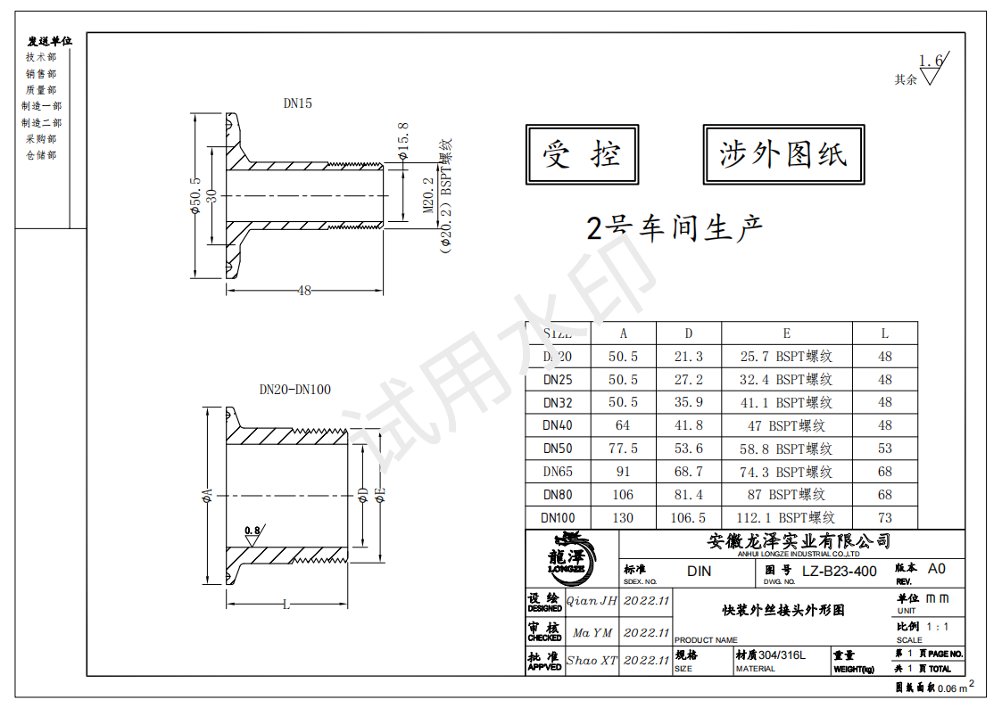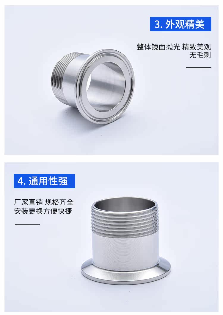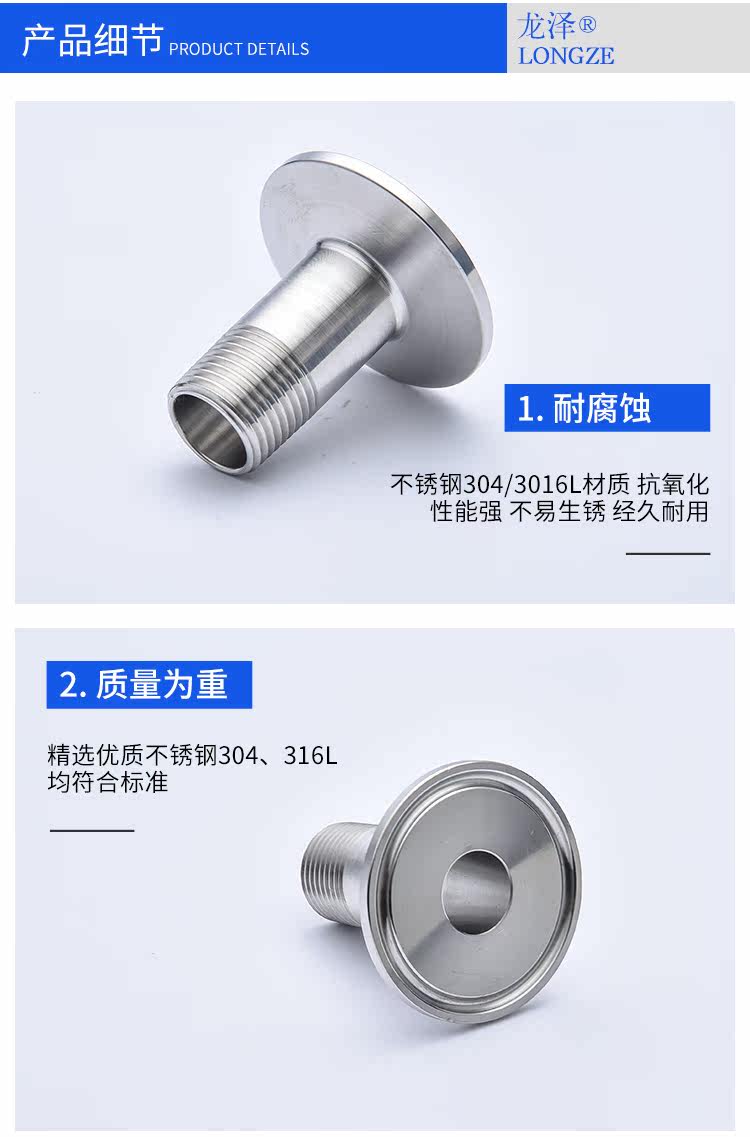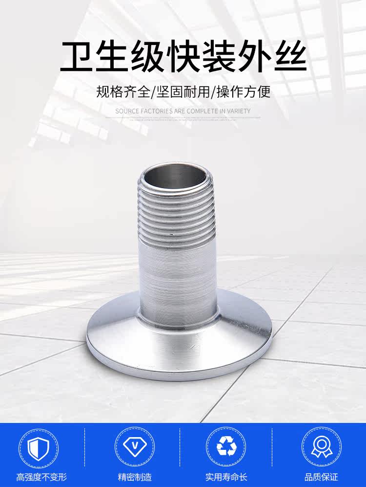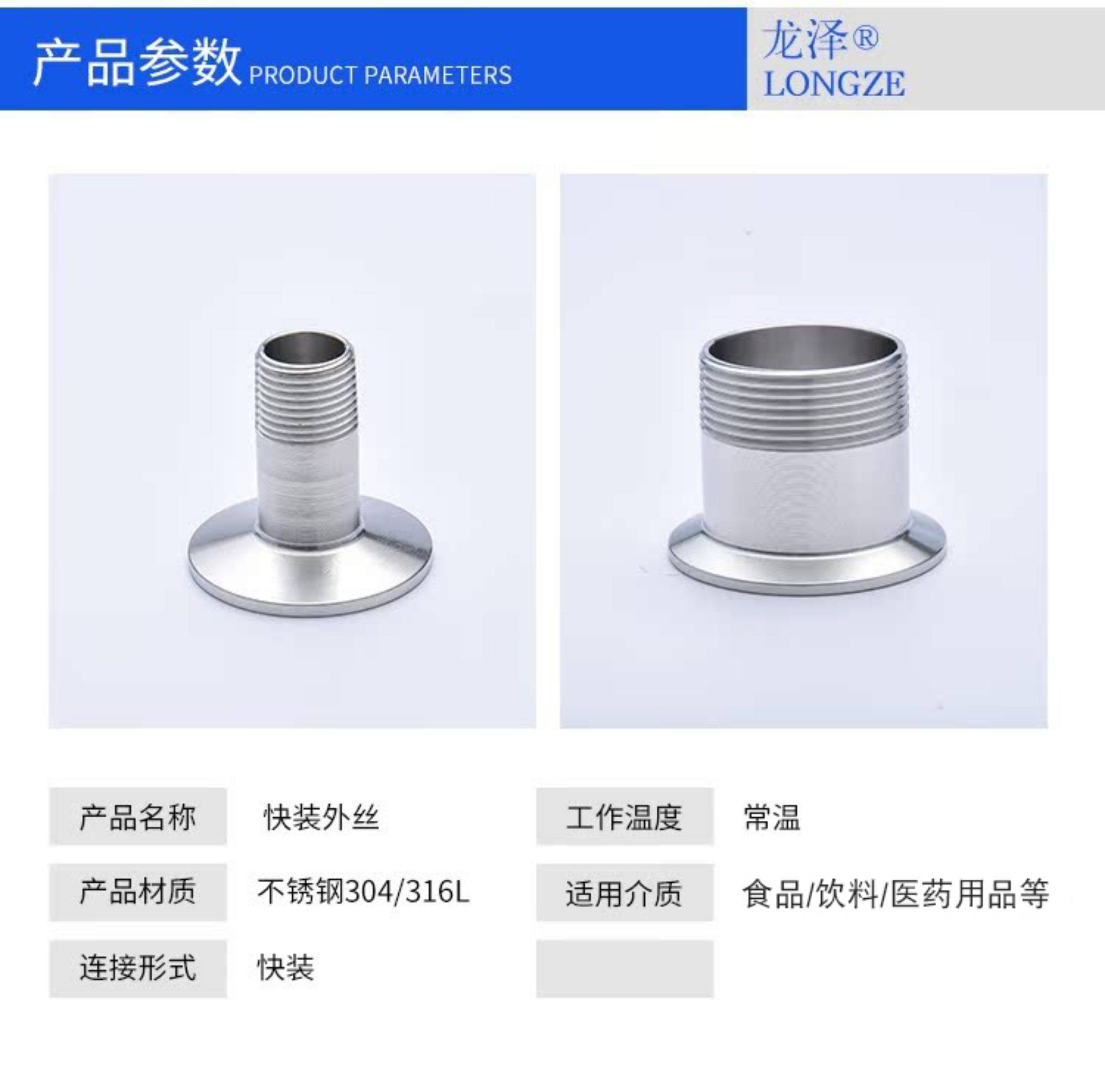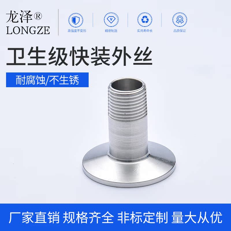 龙泽304/316L不锈钢卫生级快装外丝接头外牙丝扣外螺纹卡箍端接头