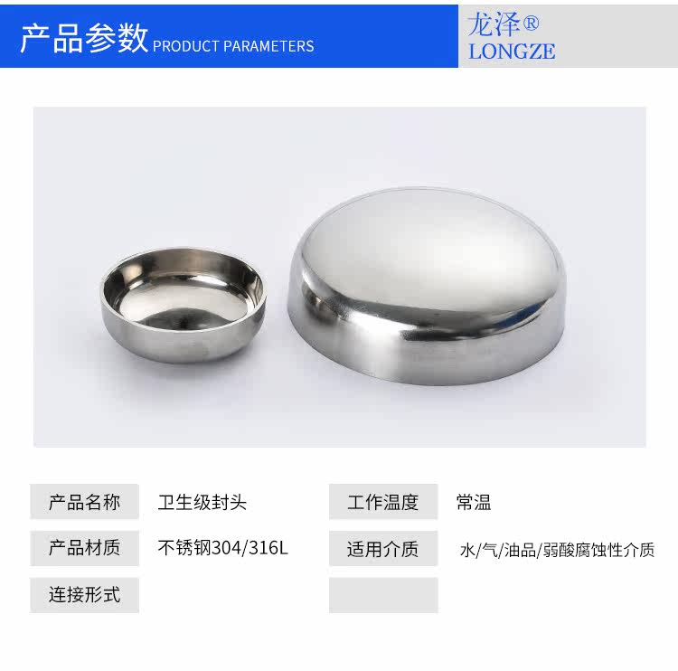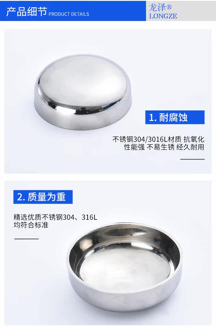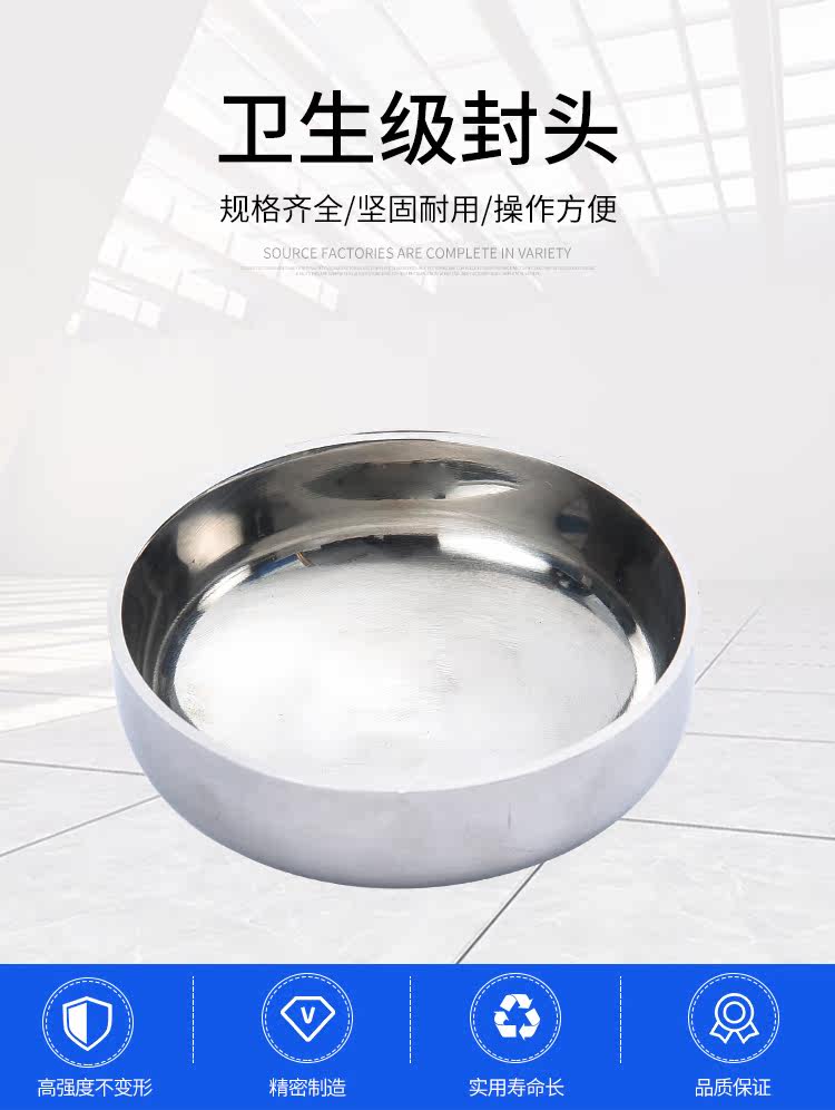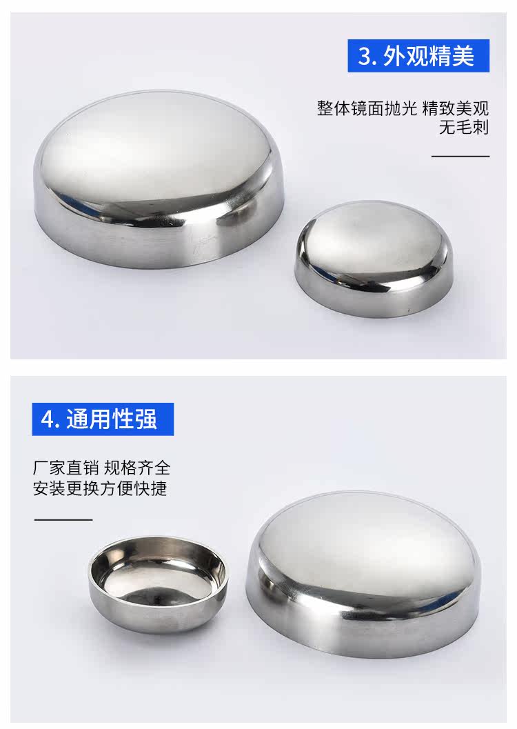 304不锈钢卫生级封头内外镜面抛光椭圆焊接管帽亮光堵头盖子