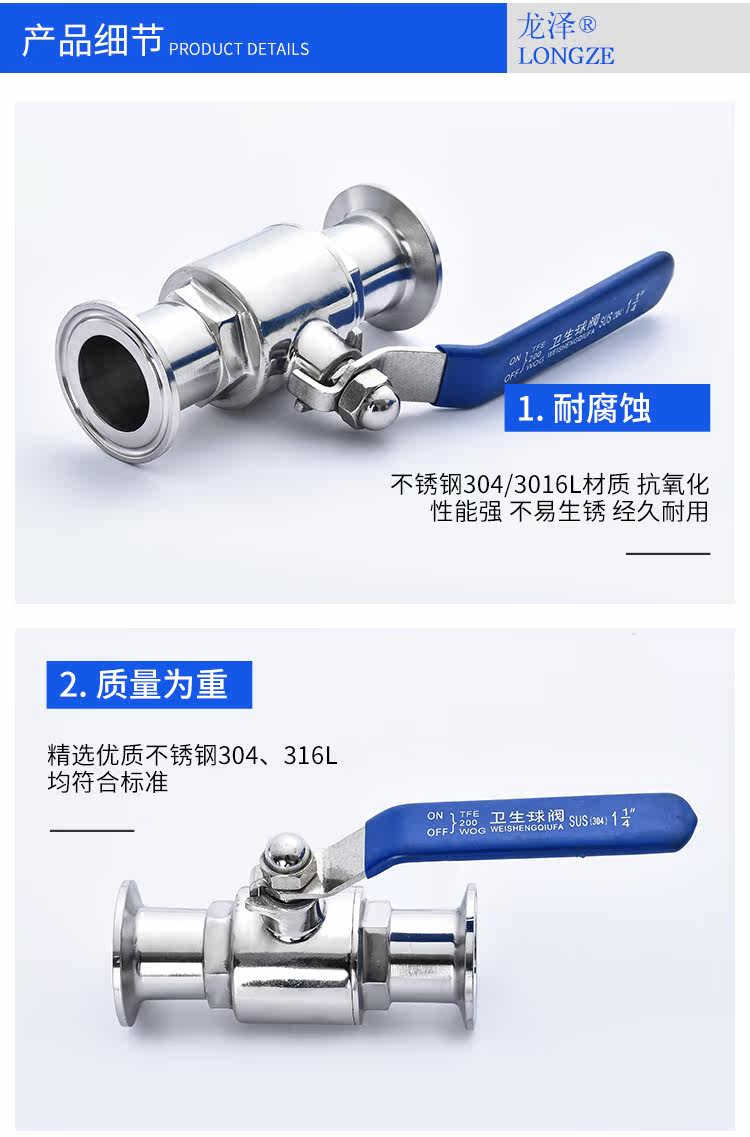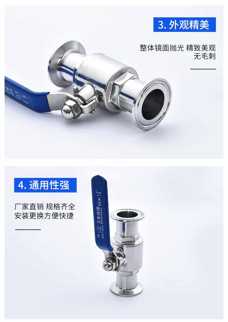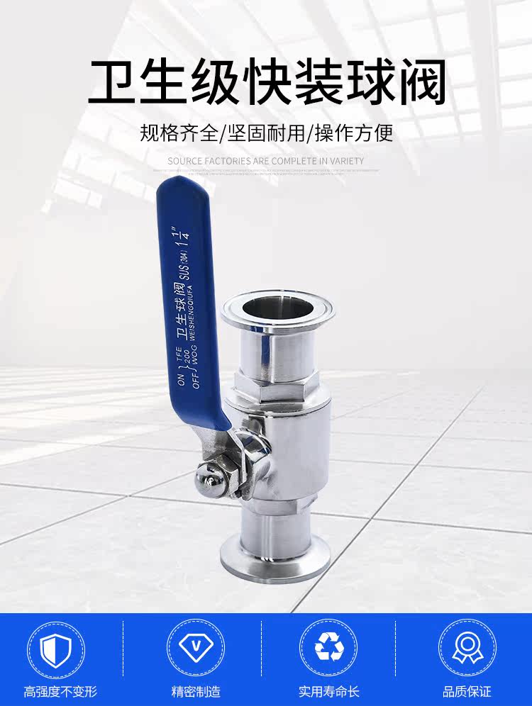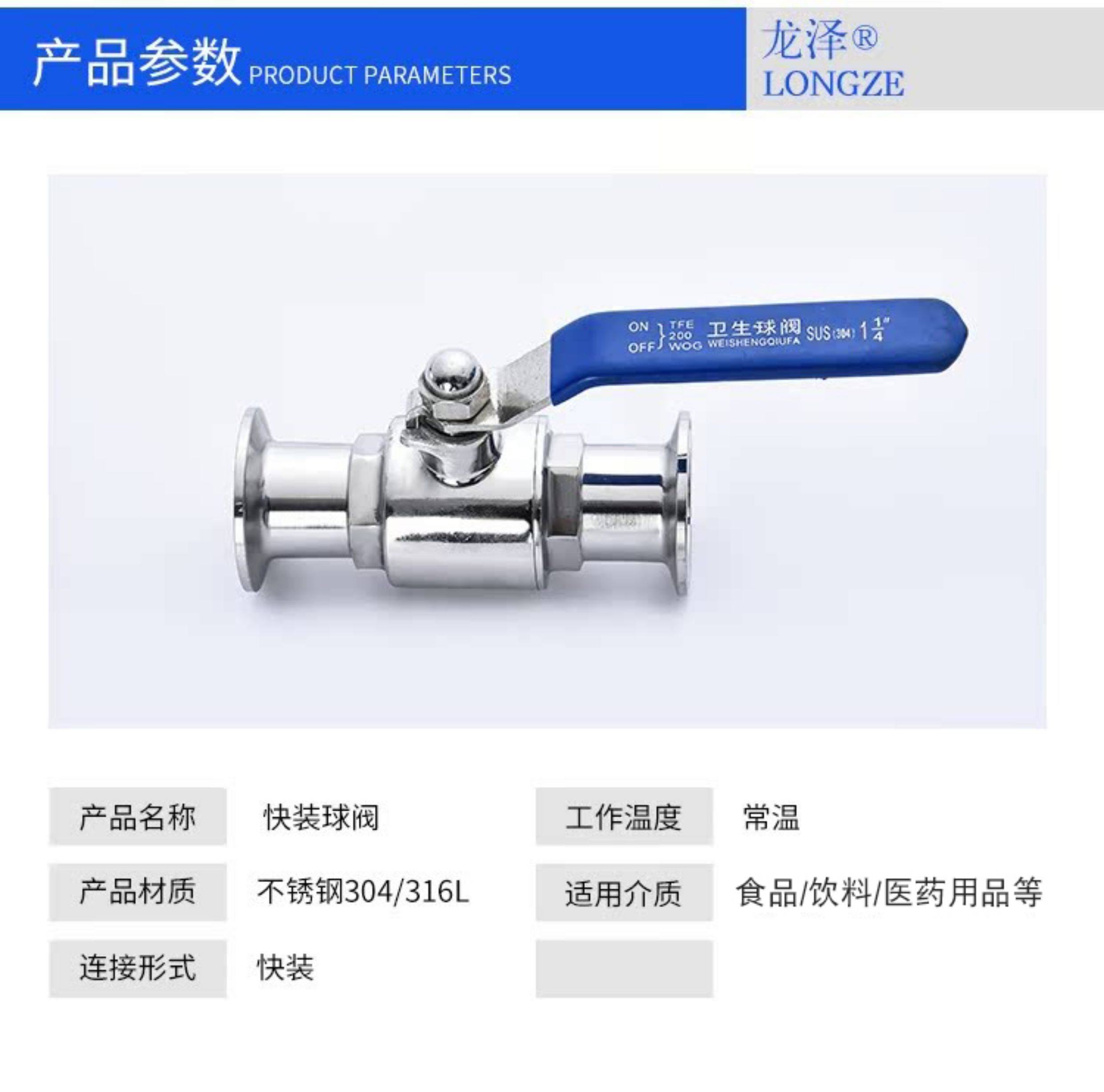 304不锈钢卫生级快装球阀316L快开卡箍卡扣式食品级直通快接阀门
