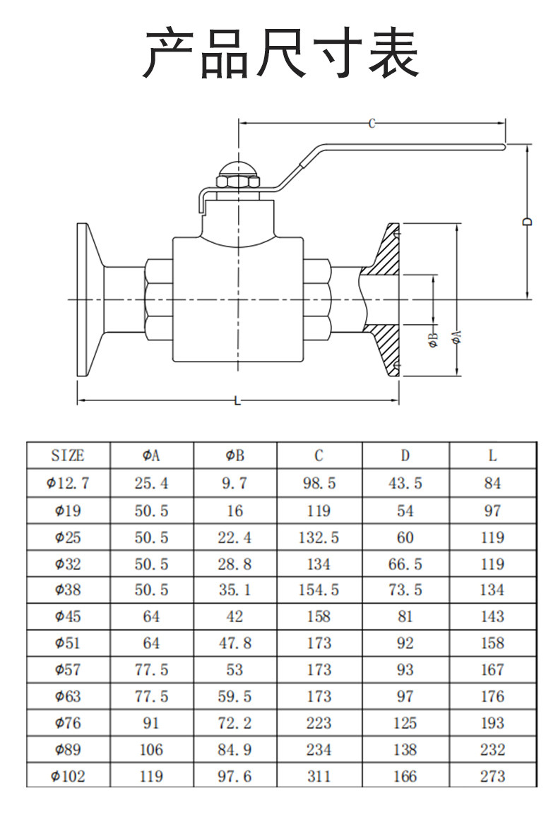 | 规格型号: | 卫生级快装球阀 |