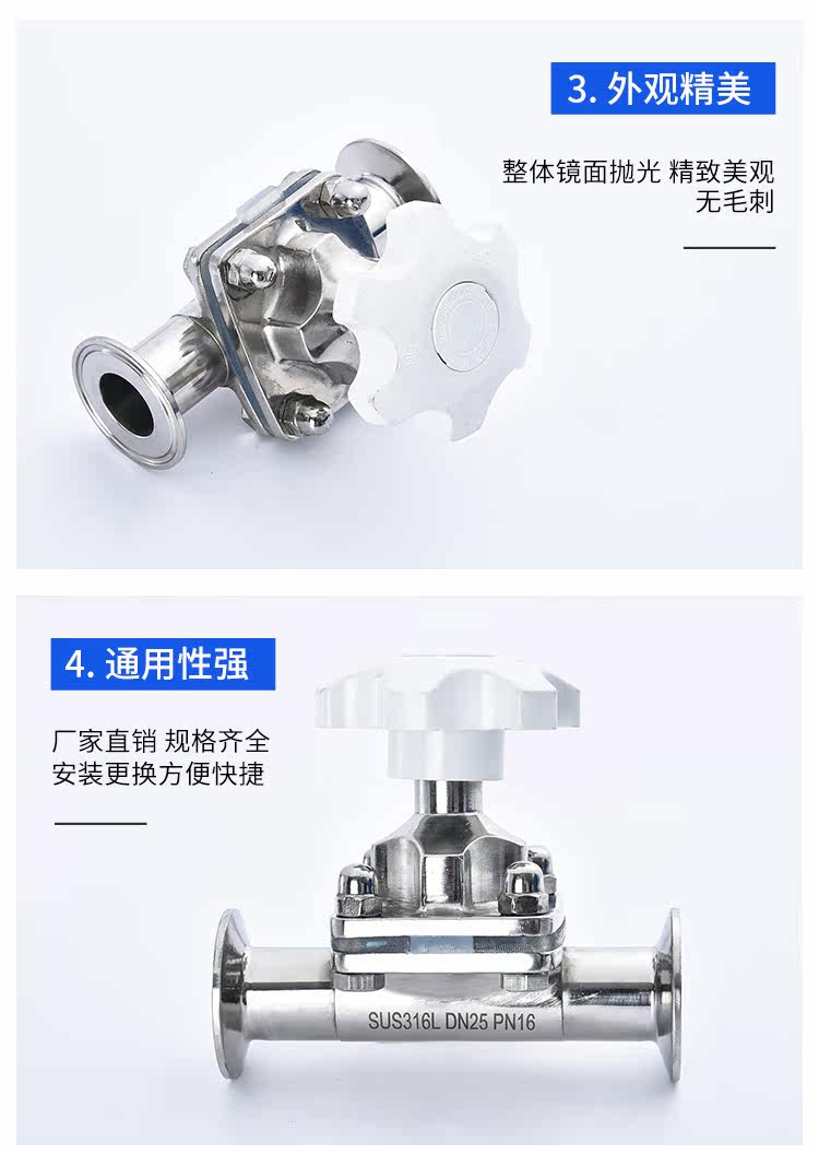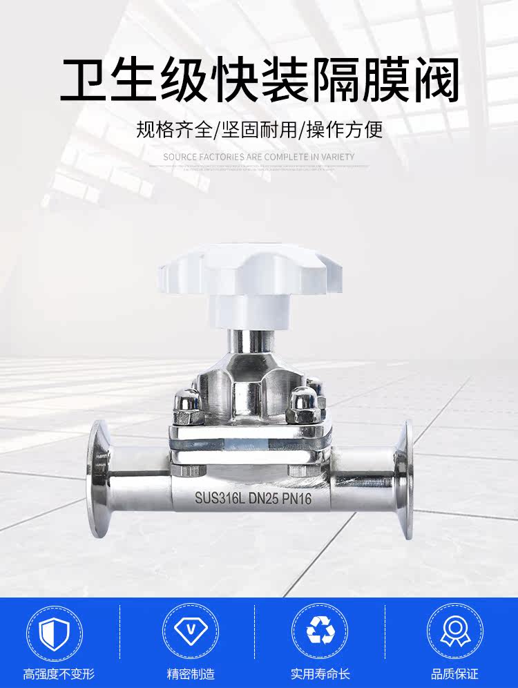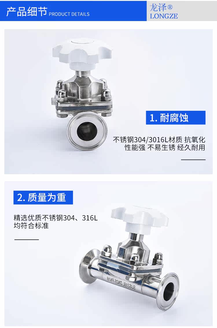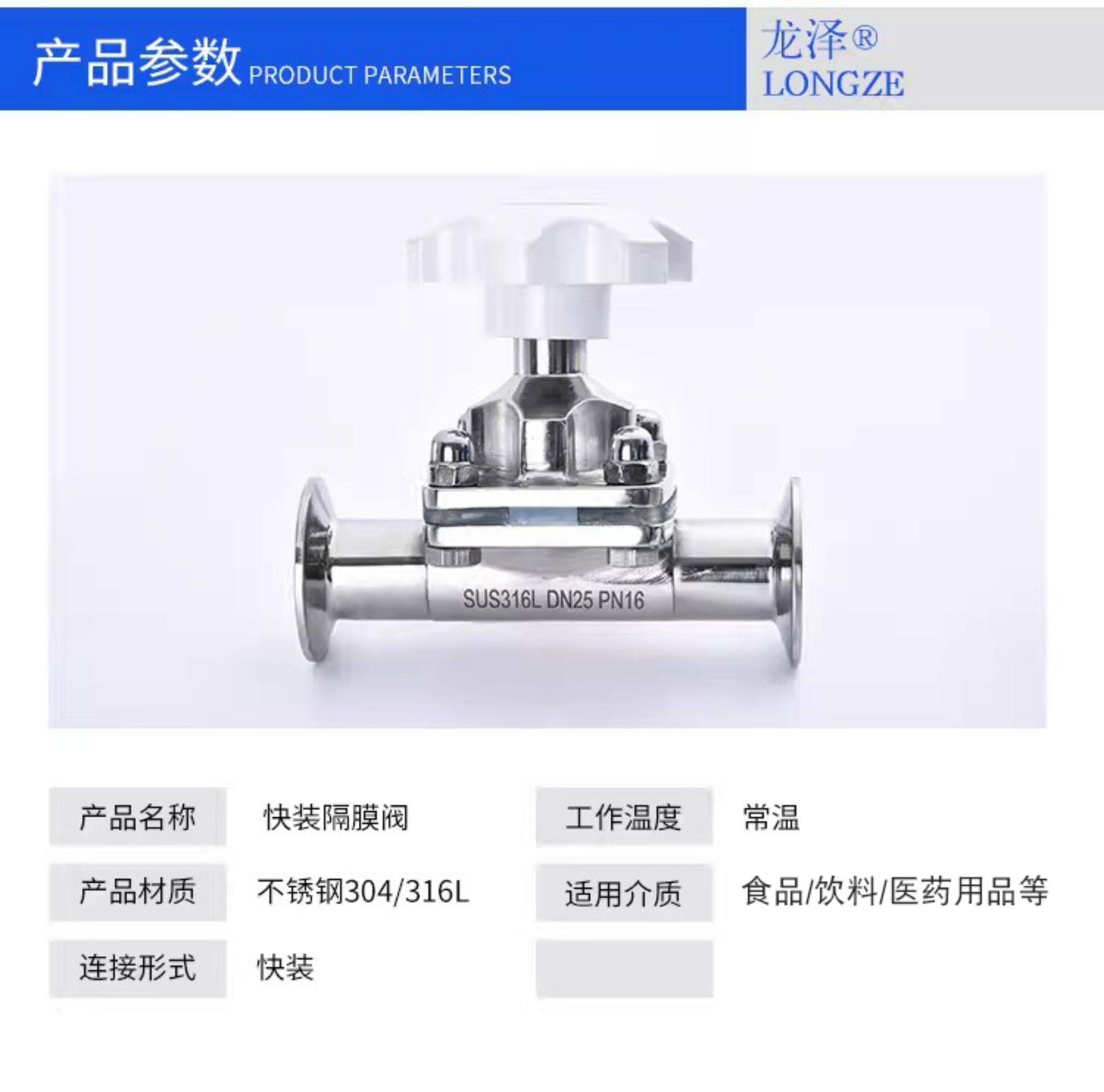 快装隔膜阀316L龙泽不锈钢食品卫生级直通快开卡盘式卡箍膜片阀门