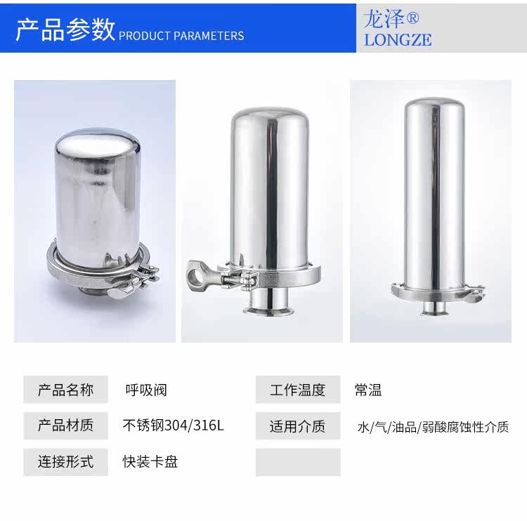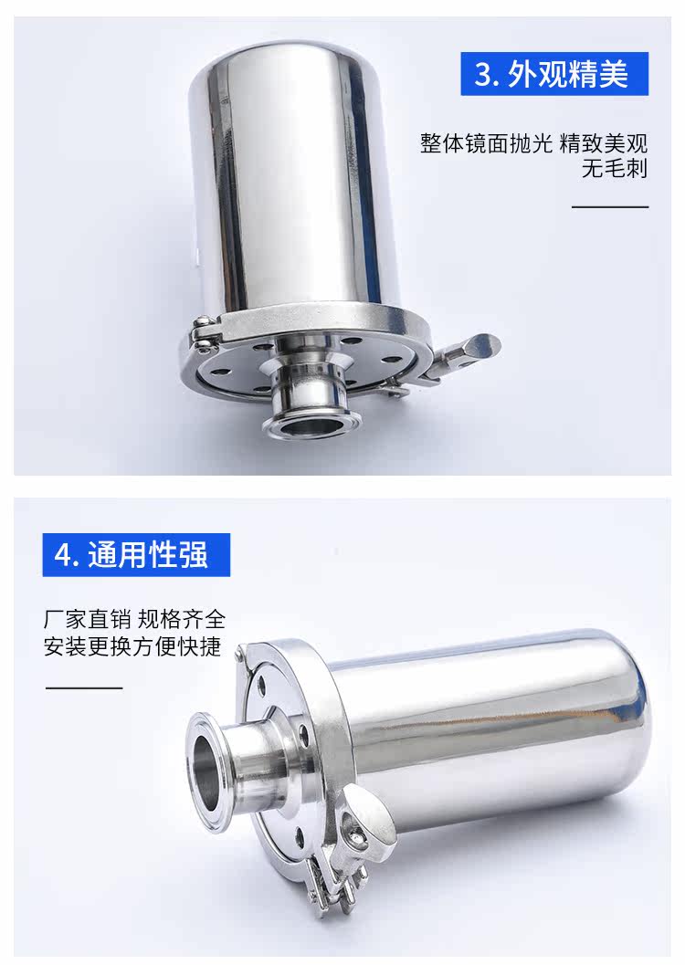 304不锈钢卫生级快装呼吸器卡箍式卡盘快开快接空气呼吸阀38 51