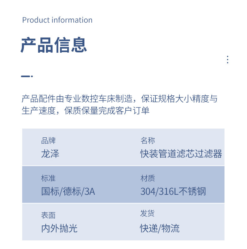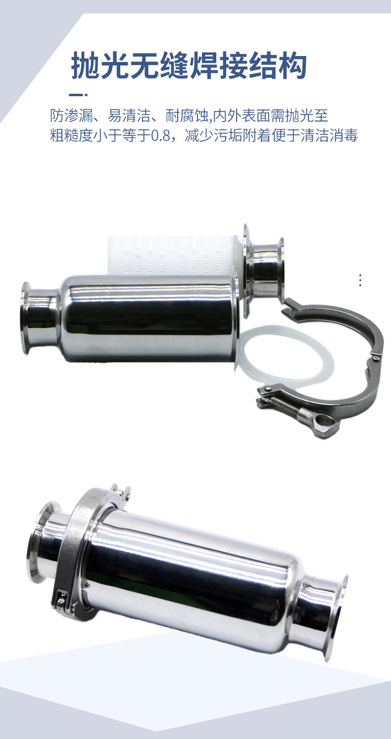 304/316L不锈钢快装管道过滤器卫生级卡箍式卡盘快接直通过滤器