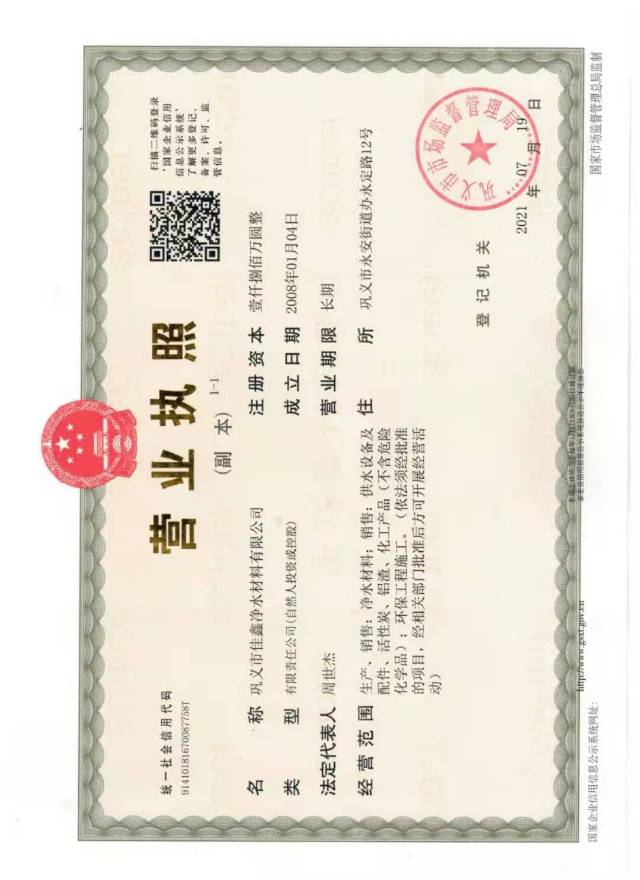 巩义市佳鑫净水材料有限公司多年来本着诚信、质量的理念,多年来与广东水投、粤海税务、盘江集团、玖龙纸业等大型企业提供质优水处理药剂以及相关的技术指导。服务客户遍布我国大部分地区。我公司从事生产的无机混凝剂等污水处理药剂等,从生产上有着多年的技术经验,数名高才化工专业研究生、博士等为我公司提供产品研发。生产成本依据多年的生产,与多方原材料源头厂家深度合作,为我公司生产质优产品保驾护航。此外在运输方面,巩义位于交通枢纽地带,铁路、高速等十分方便。综合生产、销售、运输、服务、技术等多方面因素,以及多年来与大型水务公司合作的经验,我公司在水处理药剂方面有着广大的合作空间。下属有巩义老厂生产各类水处理絮凝药剂;广西合作下属聚氯化铝生产线主要面向南方地区提供质优高含量水处理剂;河南地区下属两家售后服务公司--佳辰环保、佳晟水处理;广东地区下属两家销售服务公司--东莞佳鑫、东莞鑫泉,服务于广东各地区各户。