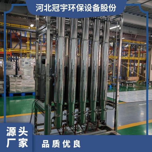 采用列管降膜蒸发技术,保证料水均匀的分布在各个蒸发管内壁,形成水膜蒸发。上效纯蒸汽为下效蒸发器提供热能,自身完成蒸发、液化形成蒸馏水