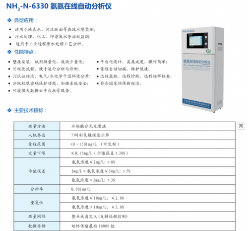 NH-N-6330氨氮在线自动分析仪用于化工,印染废水排放监测