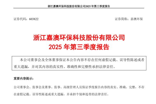 当前位置:中链企通环保网 > 新闻资讯 > 嘉澳环保:2025年前三季度净利润同比减亏1.15亿元