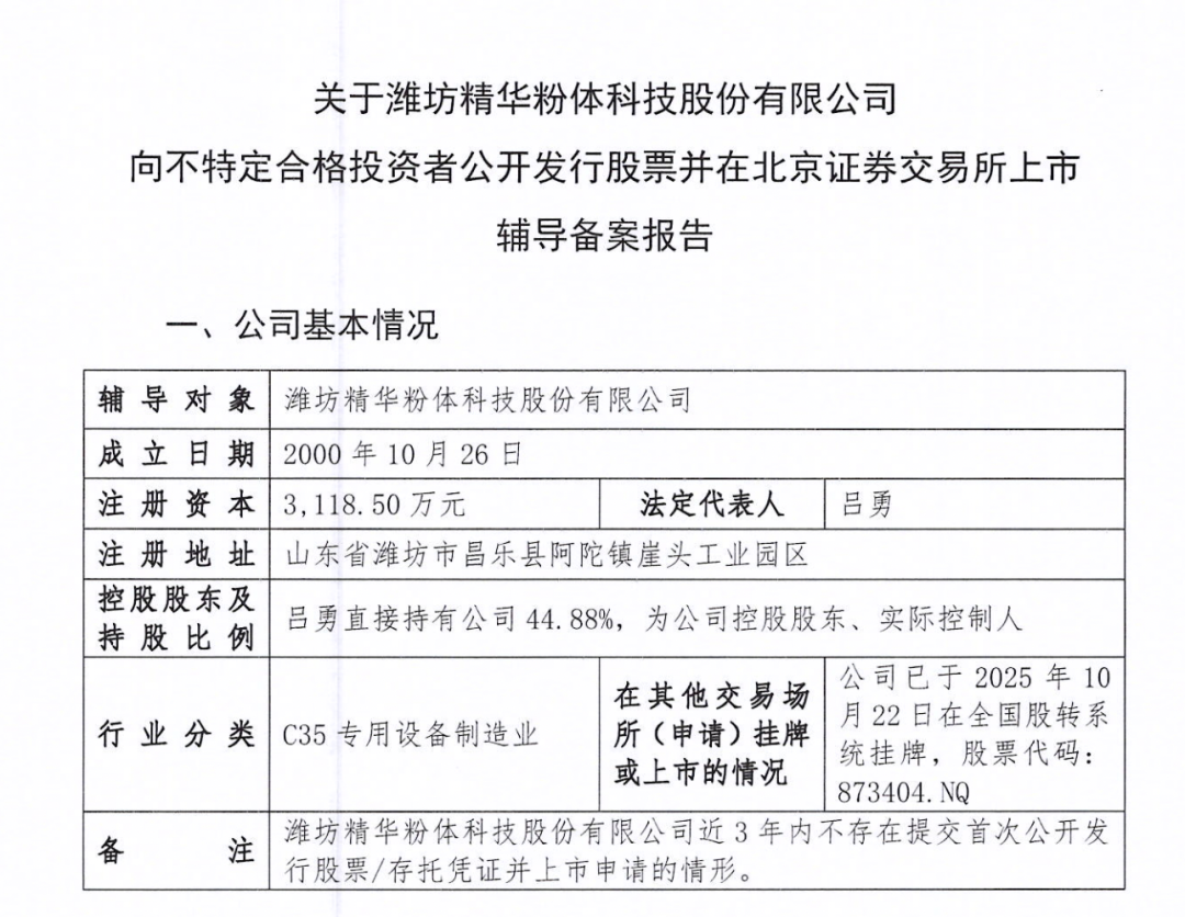 潍坊精华完成IPO辅导备案登记 力争2027年在北交所上市