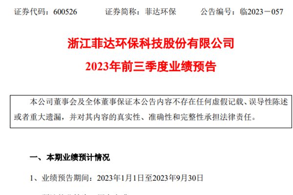 近日,浙江菲达环保科技股份有限公司(简称:菲达环保)发布“2023年前三季度业绩预告”,预计前三季度净利润11,500万元-13,800万元,比上年同期增长18%-41%,扣非净利润9,000万元-10,800万元,比上年同期增长176%-231%。 菲达环保表示,公司预计业绩与上年同期相比有较大幅度增加,主...