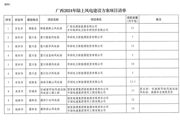广西壮族自治区能源局关于印发2024年度陆上风电、集中式光伏发电项目建设方案的通知 各市发展改革委,各电网企业,有关项目单位: 为贯彻落实自治区党委、政府决策部署,根据国家、自治区有关文件要求,我局依据竞争性配置评分结果及有关规则统筹制定了2024年度陆上风电、集中式光伏发电项目建设方案。现印发你们,并就有关事项通知如下: 一、列入...