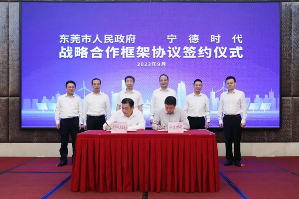 9月8日,宁德时代与东莞市政府签署战略合作框架协议。东莞市委书记肖亚非,市委副书记、市长吕成蹊,市委副书记、松山湖党工委书记刘炜,市委常委、副市长刘光滨;宁德时代董事长、总经理曾毓群,新能达董事长耿继斌,宁德时代首席客户官、市场体系联席总裁谭立斌等共同出席并见证了签约。签约前,肖亚非与曾毓群一行会谈。 肖亚非指出,东莞坚持制造业当家...