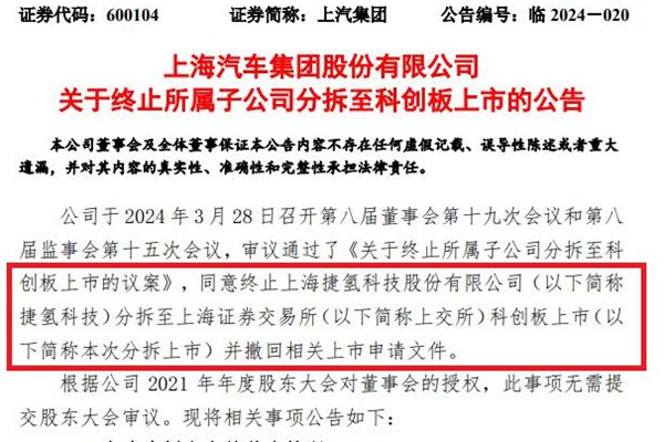 3月29日,上汽集团发布公告显示,决定终止上海捷氢科技股份有限公司(以下简称“捷氢科技”)分拆至上交所科创板上市并撤回相关上市申请文件。 据悉,2022年4月28日,上汽集团审议通过了关于分拆所属子公司捷氢科技至科创板上市方案的议案。上汽集团表示,公司自筹划本次分拆上市事项以来,积极推进相关事宜,组织中介机构...