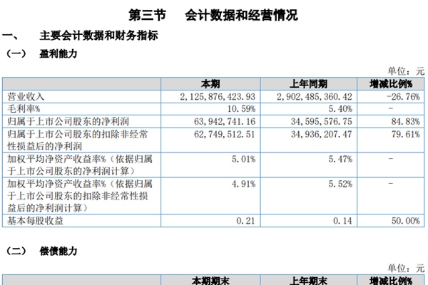 2023年8月22日,海泰新能公告发布2023年半年度报告。统计数据显示,海泰新能上半年实现21.26亿元,同比下降26.76%;归属于上市公司股东的净利润6394.27万元,同比增长84.83%。 公司表示,上半年光伏产业链前端的多晶硅料价格跌宕起伏,叠加国际贸易环境变化等因素,导致公司组件销售价格受原材料价格及市场影响,呈现出逐...