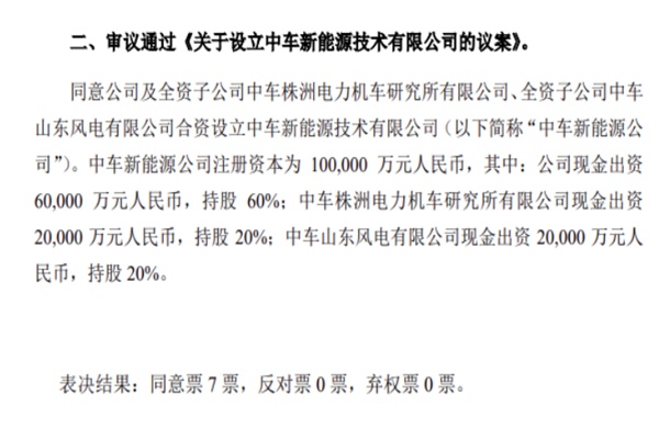 据中国中车8月25日公告,其董事会审议通过了《关于设立中车新能源技术有限公司的议案》,同意公司及全资子公司中车株洲电力机车研究所有限公司、全资子公司中车山东风电有限公司合资设立中车新能源技术有限公司(以下简称“中车新能源公司”)。 据悉,中车新能源公司注册资本将达到10亿元,其中:中国中车现金出资60,000...