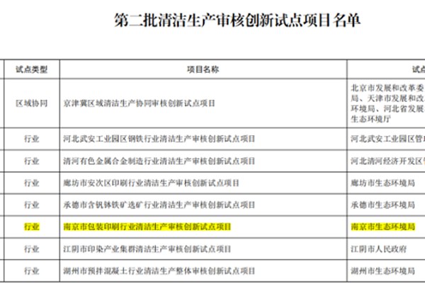 近日,生态环境部发布了《关于同意实施第二批清洁生产审核创新试点项目的通知》,“南京市包装印刷行业清洁生产审核创新试点项目”榜上有名,继汽车整车及零配件制造(涂装)行业清洁生产审核后,再次成功入选国家级试点项目。 据《南京市2022年度包装装潢印刷品、其它印刷品印刷企业年度报告》统计,南京市各类印刷企业共约68...