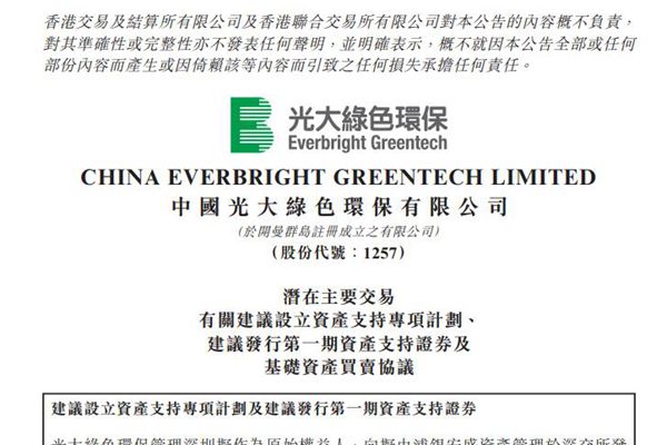 中国光大绿色环保有限公司(简称:中国光大绿色环保)公告称,公司间接全资附属光大绿色环保管理深圳拟作为原始权益人,向拟由浦银安盛资产管理于深交所发起并设立的资产支持专项计划转让基础资产,据此,资产支持证券将由浦银安盛资产管理管理的资产支持专项计划向中国合格机构投资者发行。 资产支持专项计划将采用储架式发行模式,总注册规模为人民币20亿...
