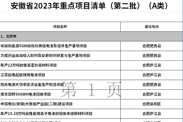 2023年10月26日,安徽省人民政府办公厅发布安徽省2023年重点项目清单(第二批),总计1451个项目,其中A类项目472个,B类项目979个,包括涉及新能源、生态环保等领域的项目。 其中涉及大气处理的项目有5万吨/年SCR脱硝催化剂循环再利用项目、一号高炉环保升级改造项目、信义光能零碳清洁能源项目等。 涉及水处理的项目有新芜...