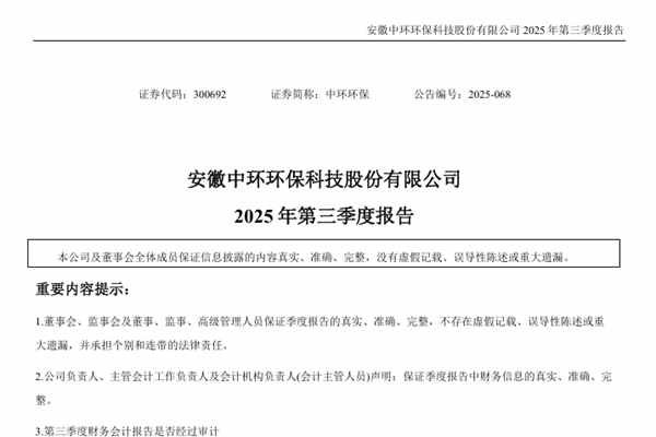 安徽中环环保科技股份有限公司 (简称:中环环保)近日发布《2025年第三季度报告》。2025年前三季度,中环环保实现营业收入为7.21亿元,同比增长2.99%;归属于上市公司股东的净利润为8460.05万元,同比增长13.84%;归属于上市公司股东的扣除非经常性损益的净利润为7782.41万元,同比增长7.98%;基本每股收益为0.1...