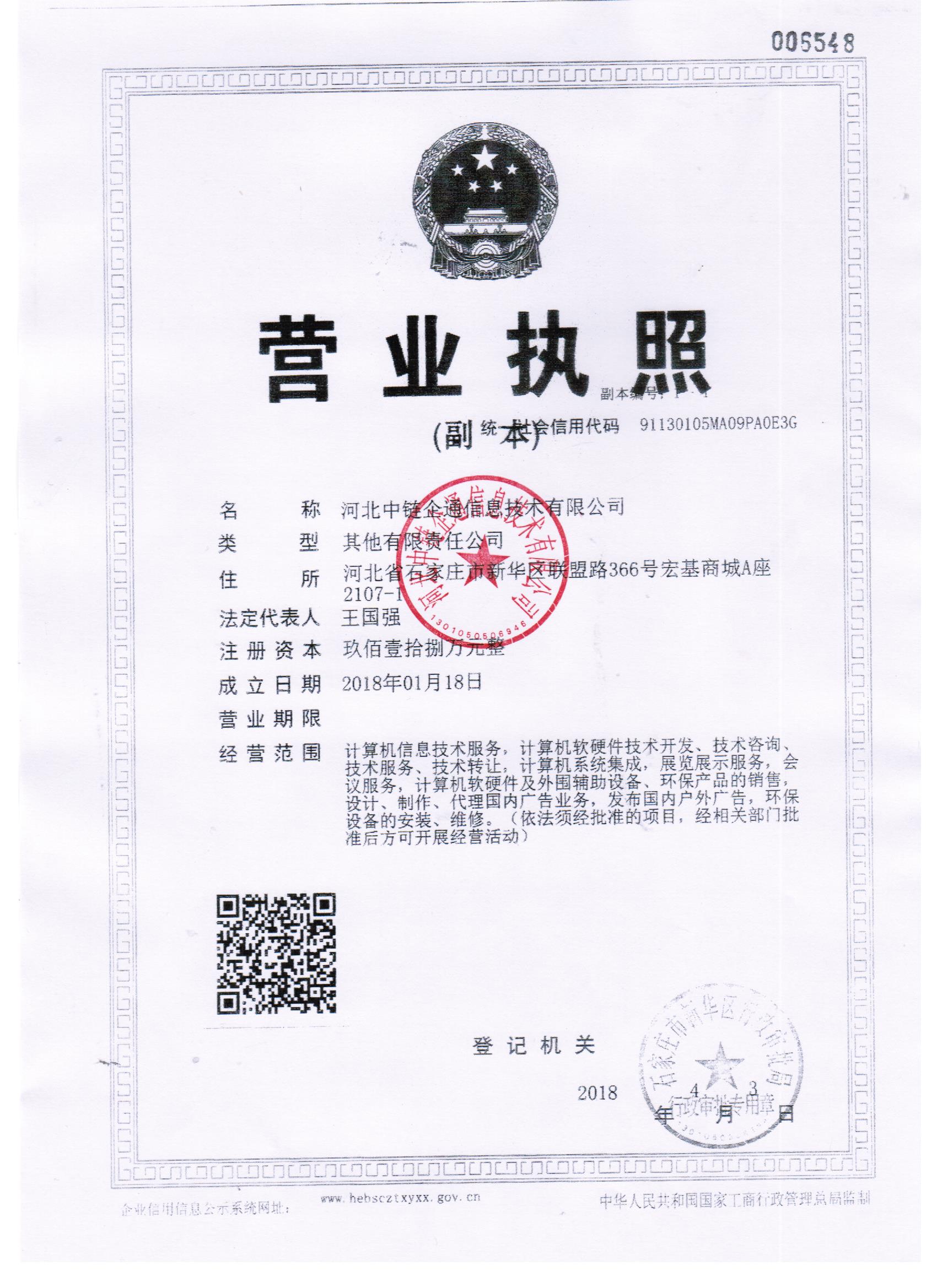 河北中链企通信息技术有限公司 地址: 河北省石家庄市新华区联盟路366号宏基商城A座2107-N 技术支持: