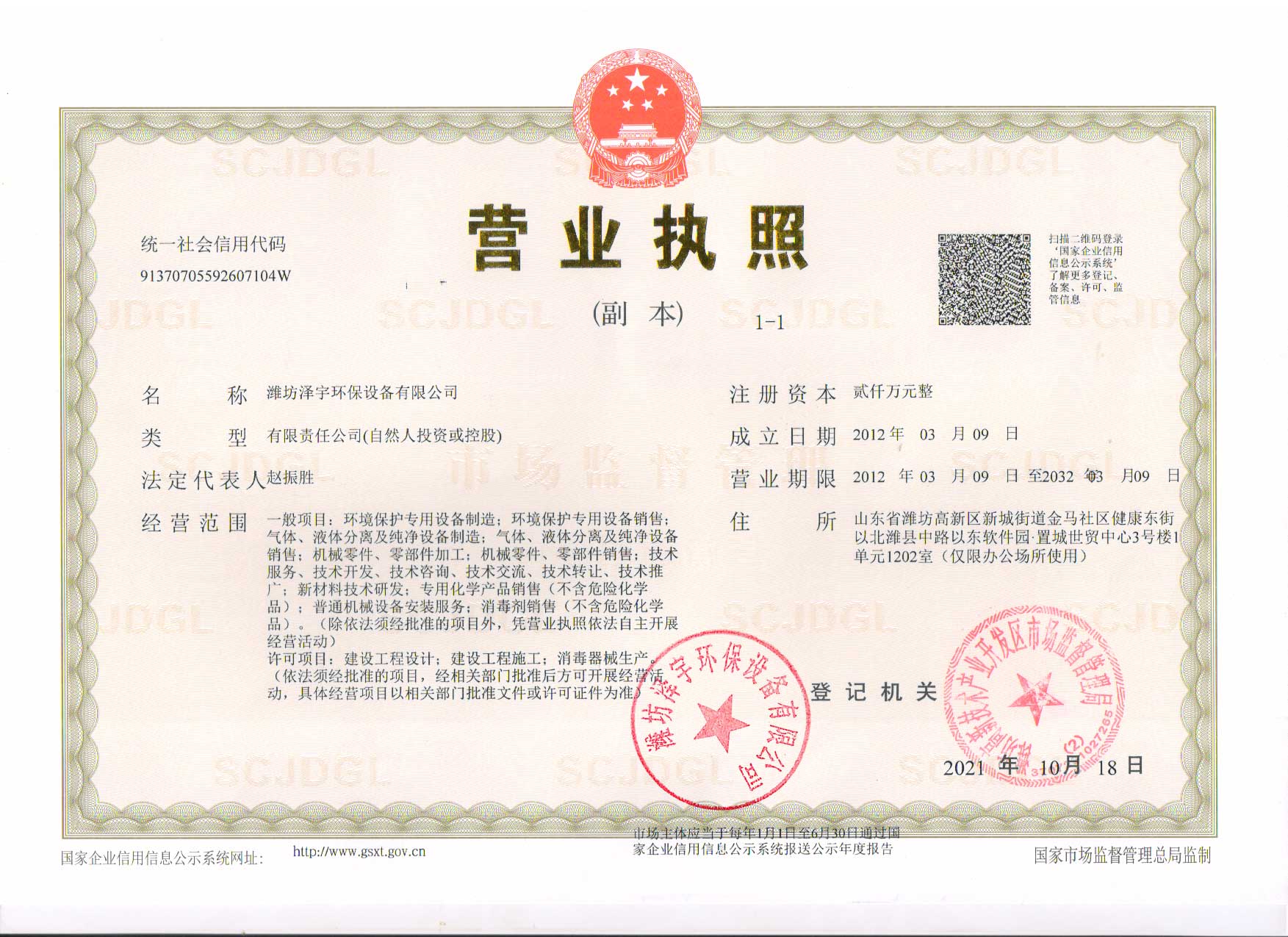潍坊泽宇环保设备有限公司 地址: 和平路福寿街福润得中心1306 技术支持: