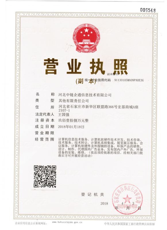 河北中链企通信息技术有限公司 地址: 联盟路366号宏基大厦A座2106-2107 技术支持: