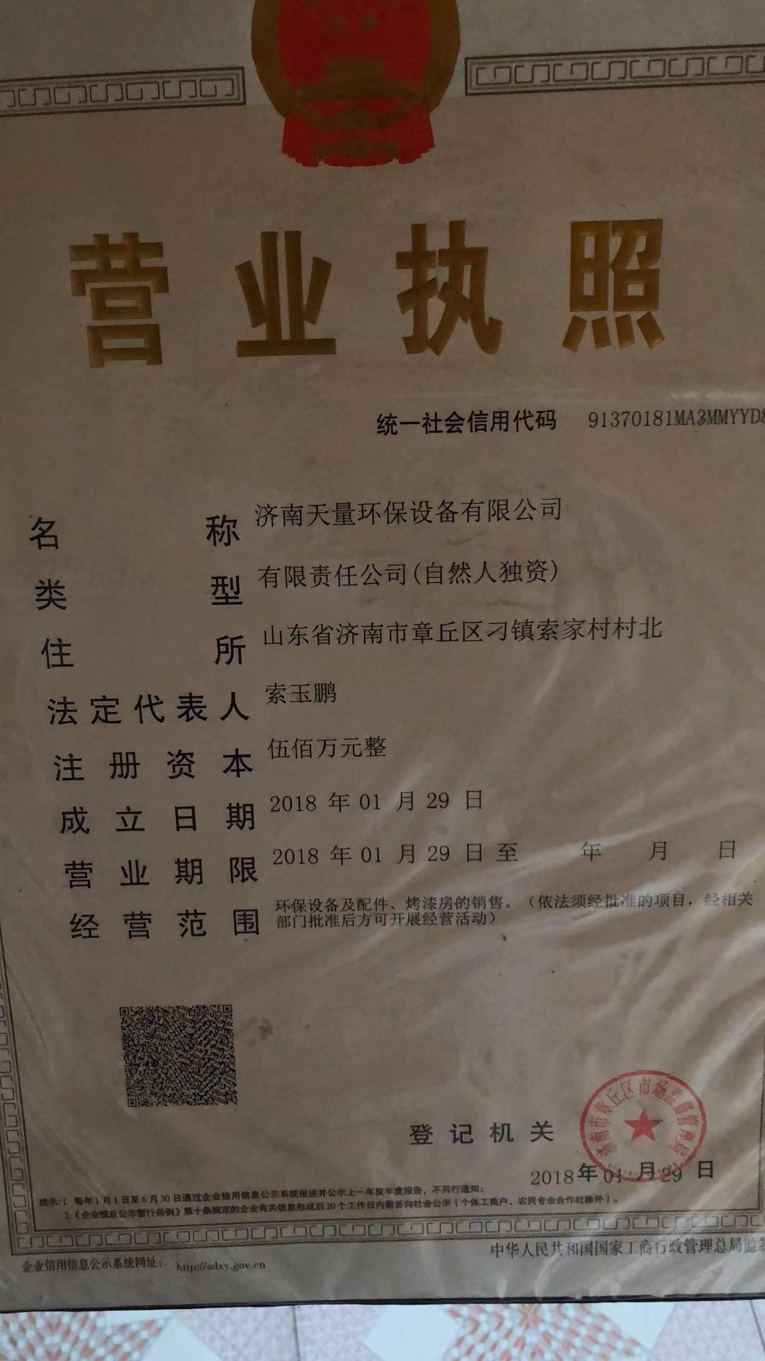 中链企通环保网网店经营者营业执照信息