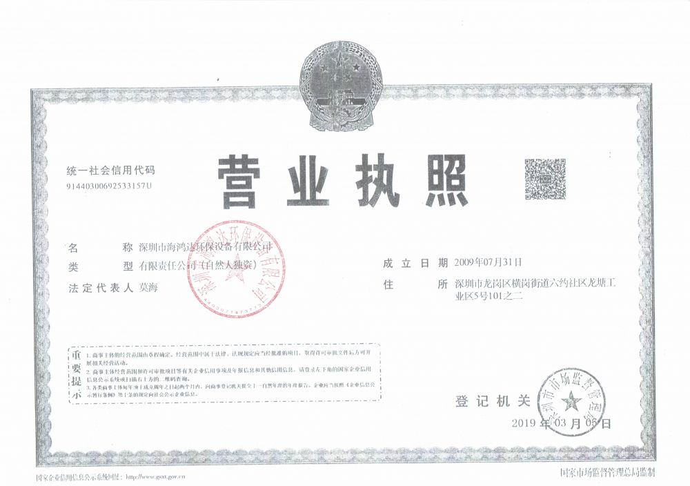 深圳市海鸿达环保设备有限公司 地址: 深圳市龙岗区横岗街道六约社区龙塘工业区5号101之二 技术支持: