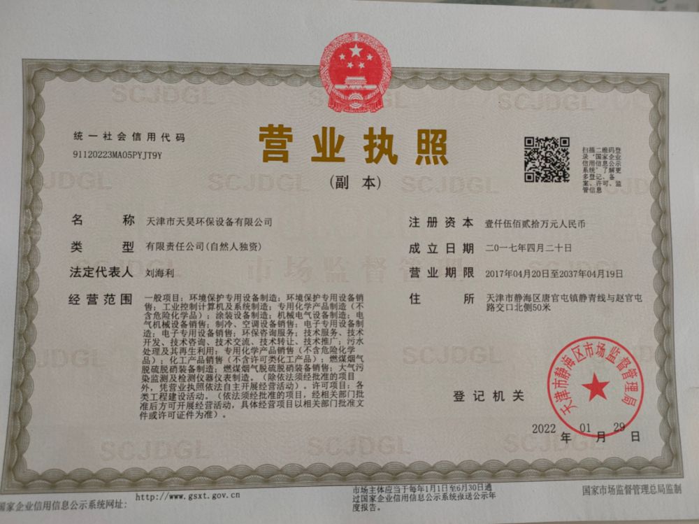 天津市天昊环保设备有限公司 地址: 天津市静海区唐官屯镇静青线与赵官屯路交口北侧50米 技术支持: