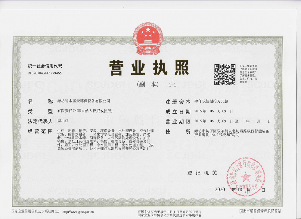 生产、制造、销售、安装:环保设备、水处理设备、空气处理设备、给排水设备、一体化污水处理设备,加药装置、净水器、一体化净水器、消毒设备、大气污染物处理设备;加工、销售:水处理药剂及填料;销售:机电设备、仪器仪表及配件:施工:水处理工程、中水回用工程、废水处理工程。(依法须经批准的项目,经相关部门批准后
