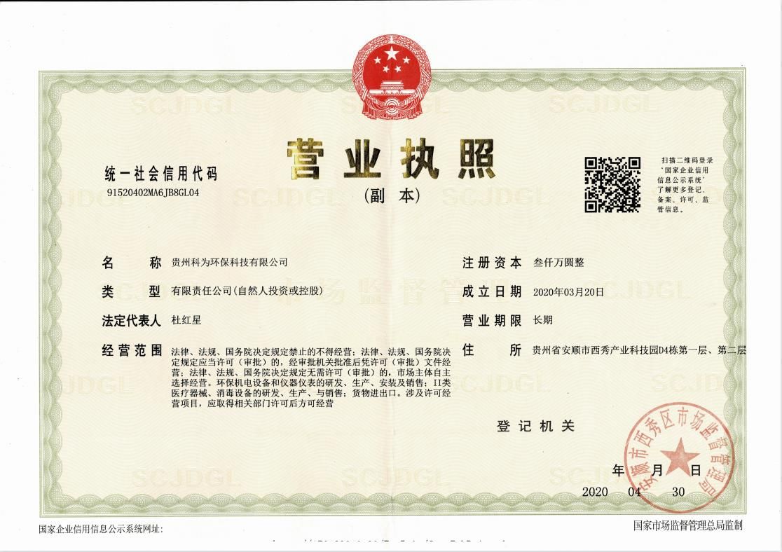 贵州科为环保科技有限公司 地址: 贵州省安顺市西秀产业科技园D4栋第一层、第二层 技术支持: